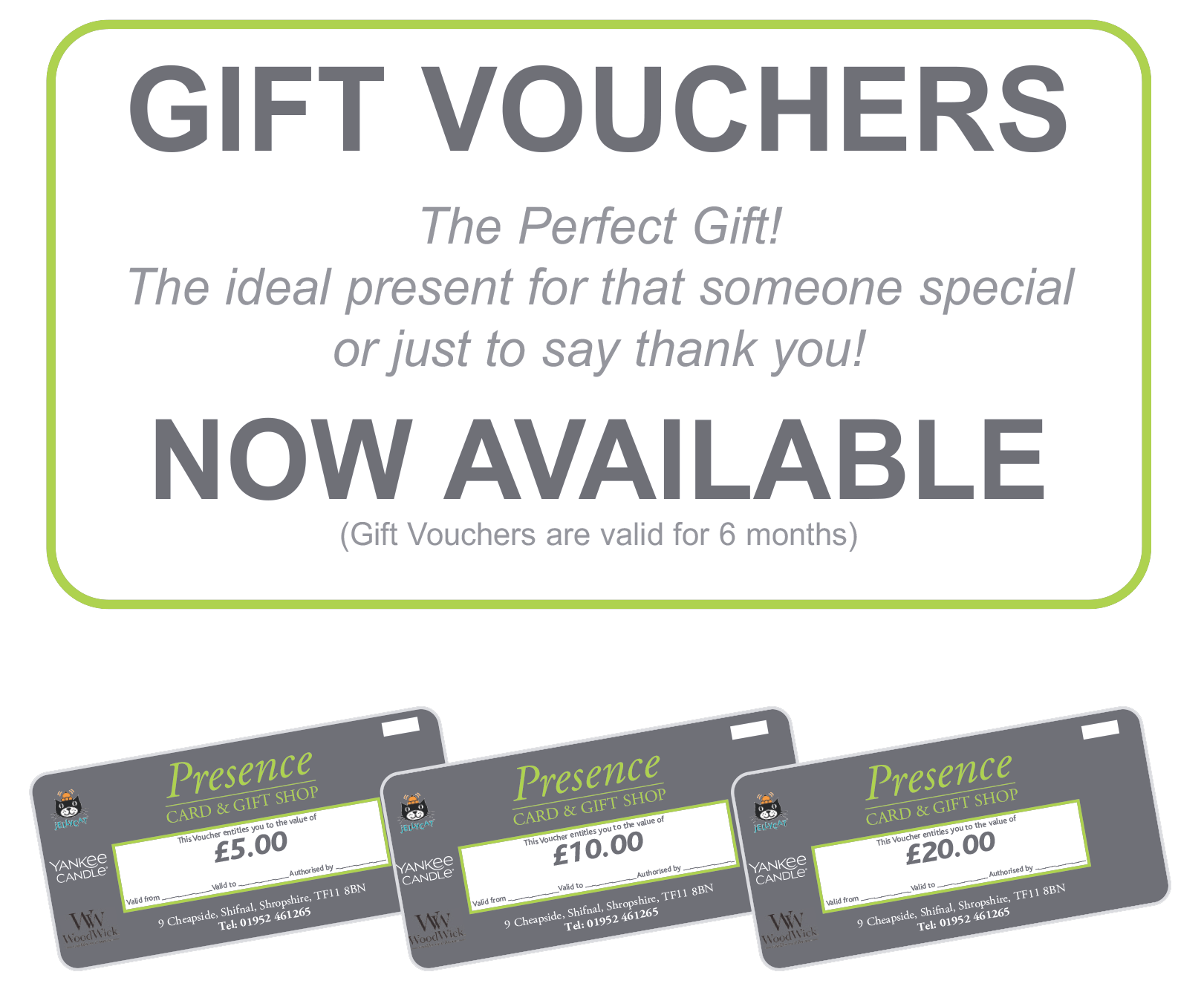 Phone: 01952 463804Email: info@presencecardsandgifts.co.uk